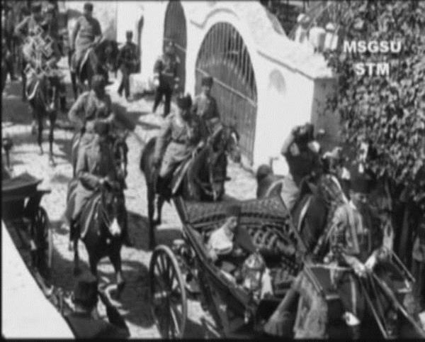 Bu kare Osmanlı devletinin son padişahı Vahdettin'e ait. Yine 1918 yılının Şubat ayına ait olduğu tahmin edilen görüntüde Sultan Vahdettin, at arabasında askerlerin arasında halkı selamladıktan sonra Sultan Abdülhamid'in cenaze merasimine katılıyor.