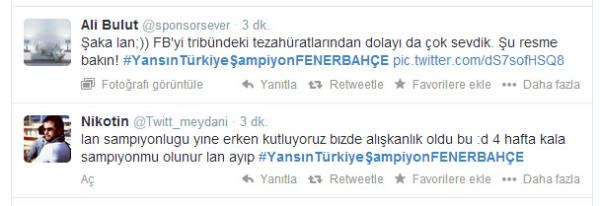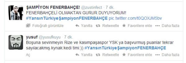 Şampiyon oldugunun farkında olmayan fenerliler görüyorum.