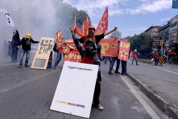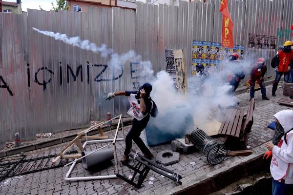 1 Mayıs Emek ve Dayanışma Günü'nde Osmanbey'de toplanan gruplar güvenlik güçlerine ait barikatları yıkarak sapan ve taş ile saldırdılar.