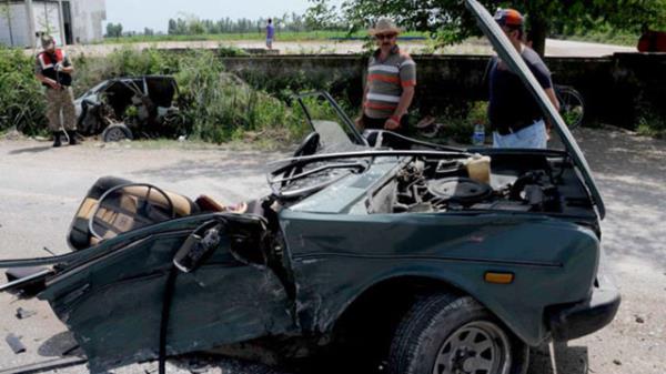 Samsun'da yoldan çıkan otomobilin çarptığı orta refüjdeki demir bariyer ok gibi saplanarak aracın ön camından içeri girip arka camından 10 metre dışarı çıktığı trafik kazasında 2 kişi öldü, 3 kişi yaralandı.