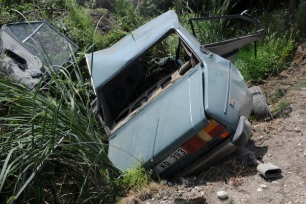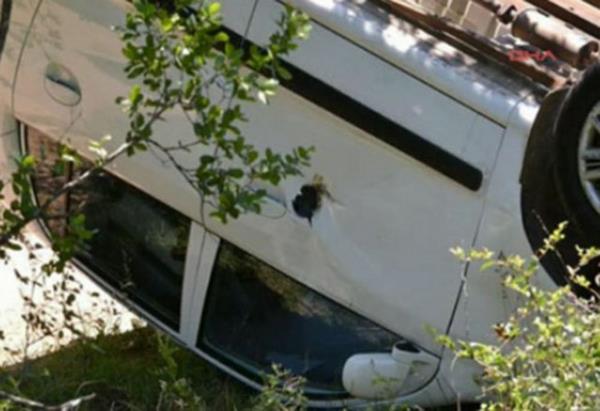 Tarlaya yuvarlanan araç, yola 100 metre uzaklıkta bulunan ağaçlara çarparak durabildi. Ağacın birini kökünden söken otomobil, başka bir ağaçta dikey vaziyette takılı kaldı.
