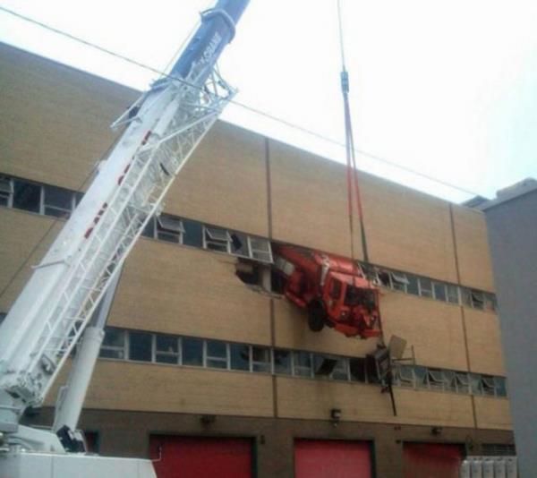 Aracın kontrolünü kaybeden kamyon şoförü 60 metre yükseklikte asılı kaldı. Kamyon yere çakılmaktan sadece bir tekerleği sayesinde kurtuldu.