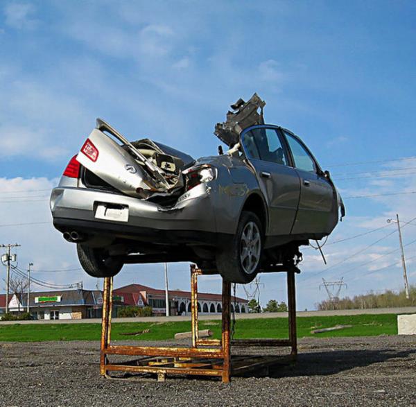 Bariyerler bıçak gibi arabayı deldi geçti.