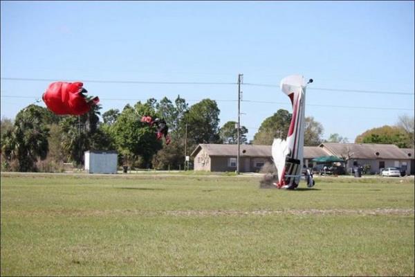 Paraşütçü Frost, yere inmesine çok az bir mesafe kaldığı sırada paraşütün iplerinin uçağın pervanesine takılması sonrası yere düştü.