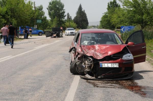 Alınan bilgiye göre, Kadirli ilçesinden Adana yönüne giden Serhat Halil Karakuş (54) yönetimindeki 80 KD 393 plakalı otomobil, Aşağıçiyanlı köyü kavşağında, Sinan Gülcan'ın (31) kullandığı 01 L 0370 plakalı otomobille çarpıştı.