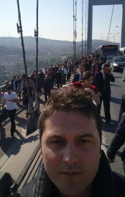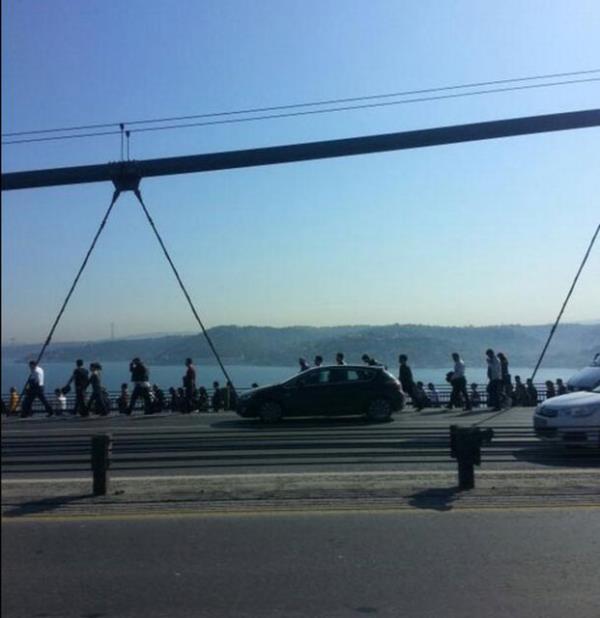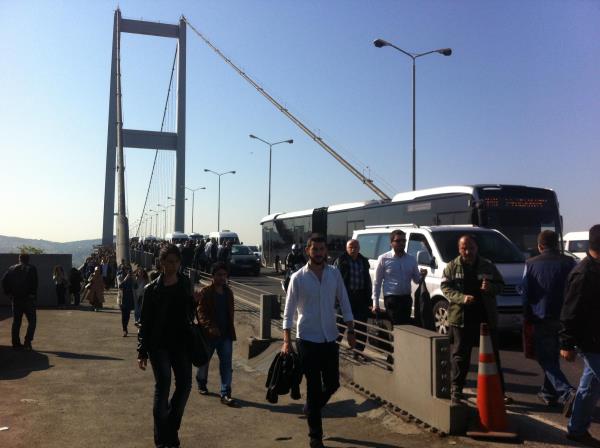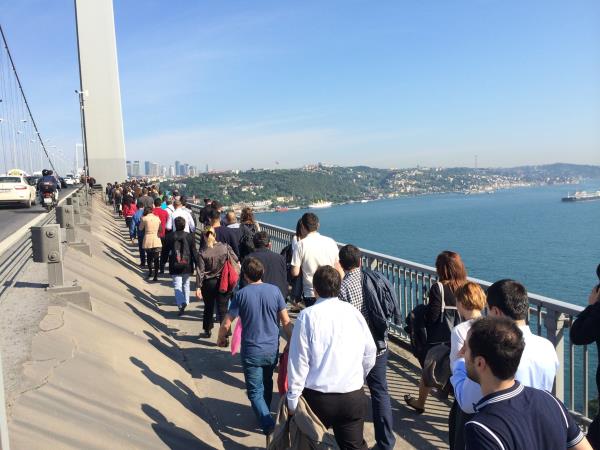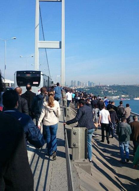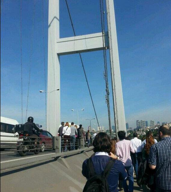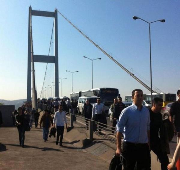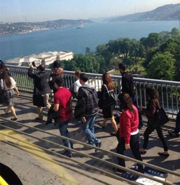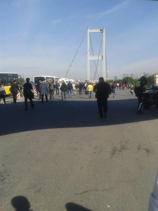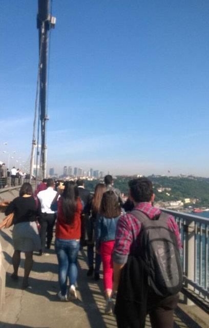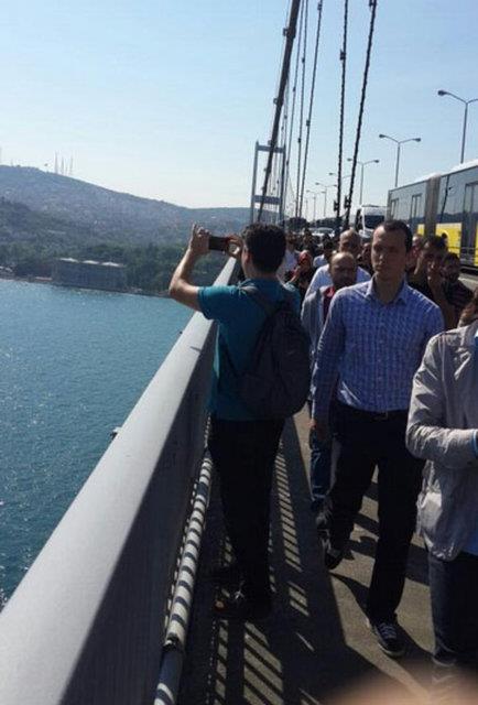 Vatandaşlar toplu taşıma araçlarından inerek köprüde yürümeye başladı. Köprü üzerinde yürüyenler sosyal medyadan fotoğraf paylaşımında bulundu.
