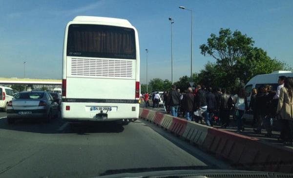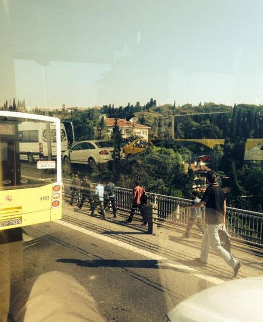 Çağlayan'da meydana gelen bir kaza nedeniyle İstanbul trafiği kilitlendi. Sabah erken saatlerde işlerine gitmek için yola çıkan vatandaşlar trafik durunca çareyi araçlarından inip köprü üzerinde yürümekte buldu.