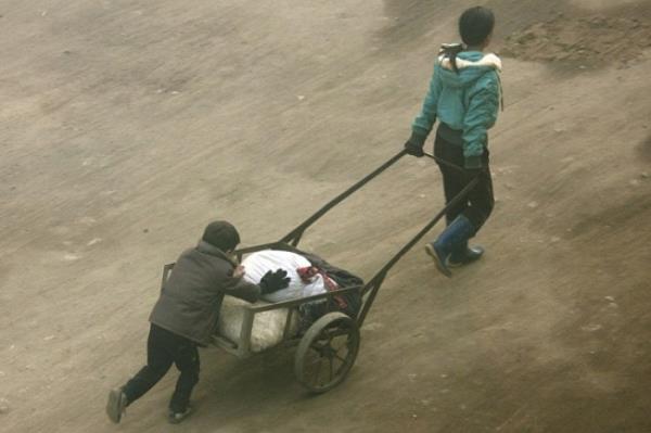 Begaebong sokakları yakınlarında mısır toplayan çocuklar.