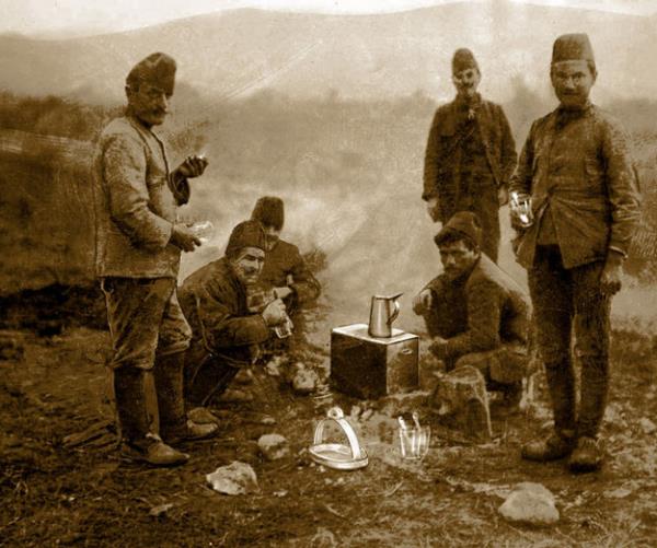 Ayrıca savaşta ekmeğini pişiren, cephede çay demleyen Türk askerlerinin fotoğrafları da dikkat çekiyor.