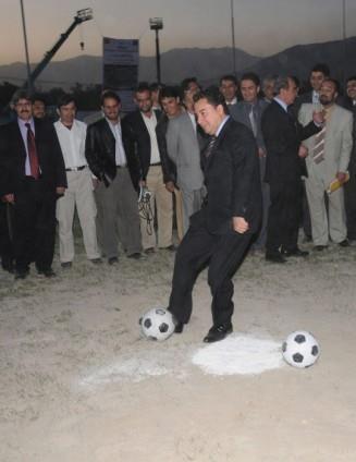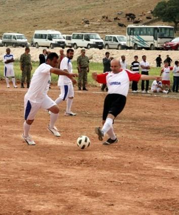 Kalkınma Bakanı Cevdet Yılmaz, Bingöl'de halı saha açılışında spor ayakkabılarını giyip penaltı atışı yaptı.