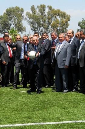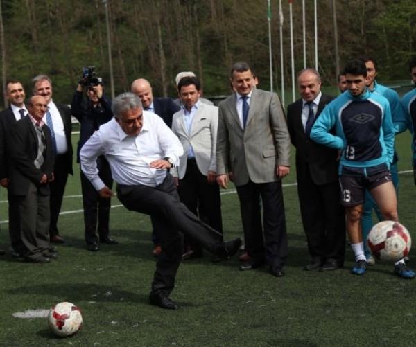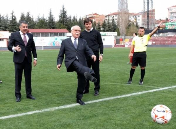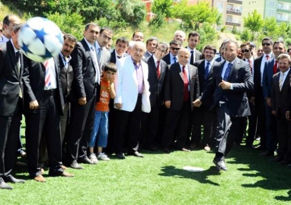 Başbakan yardımcısı Bülent Arınç, halı saha açılışında kaleciye penaltı attı.