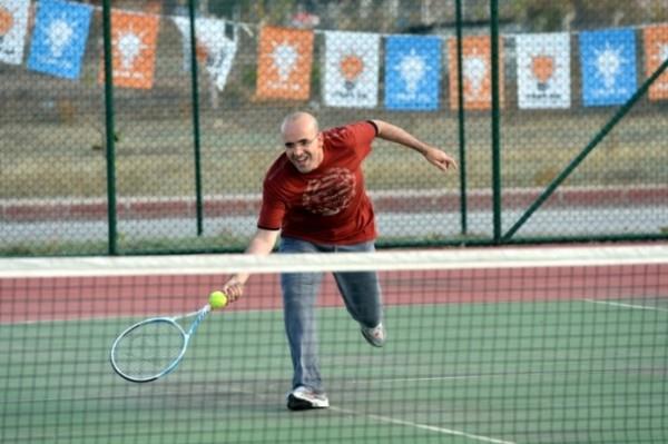 Gençlik ve Spor Bakanı Akif Çağatay Kılıç, İstanbul'daki incelemeleri sırasında masa tenisi oynayarak günün stresini atarken.