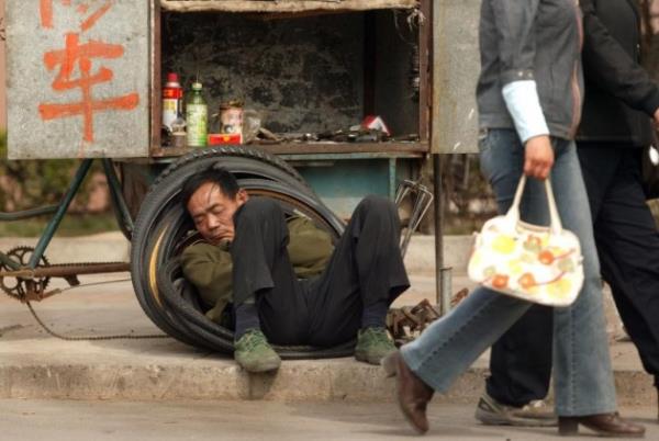 Havaların ısınmasıyla birlikte sokaklarda uyuyanların sayısıda arttı. Özellikle Çin ve Japonya'da yoğun iş temposu için verilen aralarda insanlar nereyi bulursa hemen uykuya dalıyor.