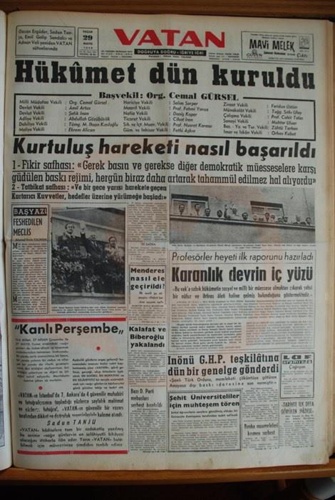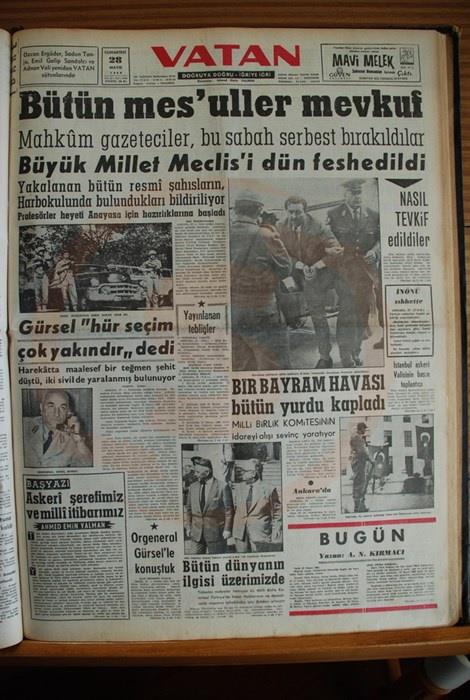 Darbeden sonra darbeyi planlayan ve icra eden 37 düşük rütbeli subay ve Emekli Orgeneral, Cemal Gürsel'in oluşturduğu Millî Birlik Komitesi ülke yönetimini üstlendi. Darbe sonrasında bazı gazetelerin attığı manşetler gerçekten dikkat çekici. Özellikle Akşam ve Tercüman gazetelerinin attığı manşetler darbe sevdalı olduklarını açıkça gözler önüne serdi.