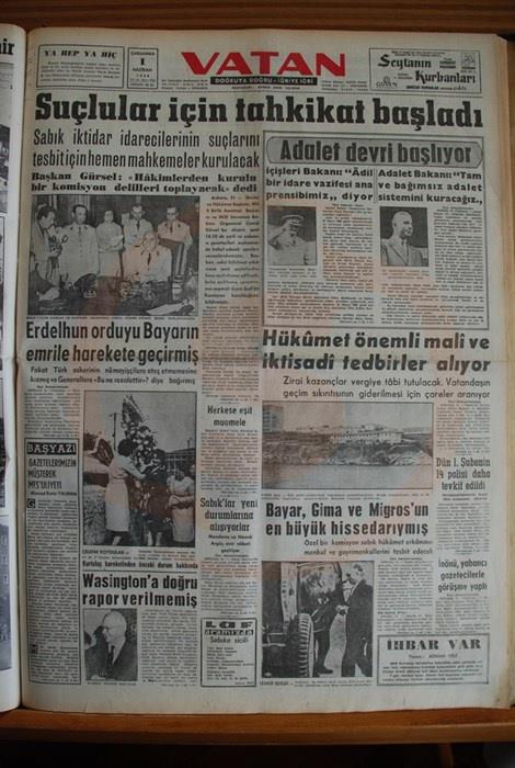 27 Mayıs'tan hemen sonra yayımlanan gazeteler, daha sonra gerçekler ortaya çıktığında utanç sayfaları olarak tarihteki yerini aldı. Darbe mağduru hükümetin başta Başbakan Menderes olmak üzere bakanlarının büyük yolsuzluklara karıştığı, gençlerin kıyma makinelerinde toz haline getirilidiği dahi gazetelerde ciddi haberler olarak sunuluyordu.