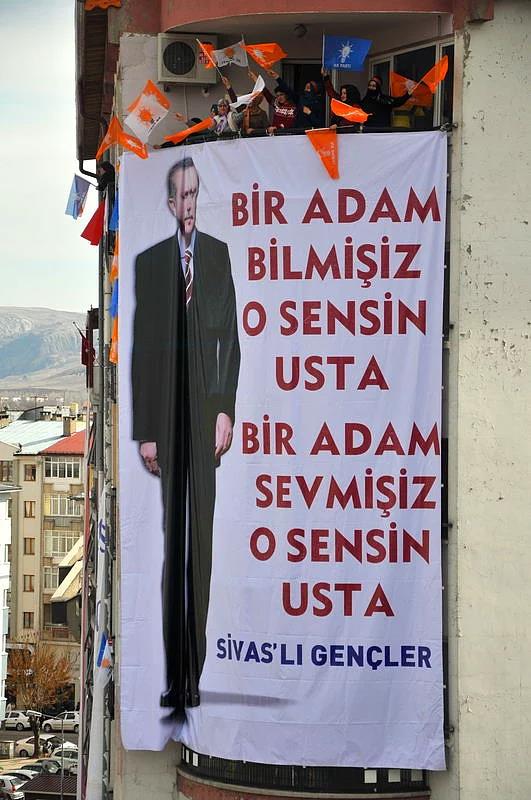 Tayyip Erdoğan her gittiği yerde muhakkak ki bir pankart, afiş, mizansen ile karşılanıyor. İşte aşkla, ustalıkla, padişahlık ve devrimcilikle yoğrulmuş Tayyip Erdoğan pankartları, sözleri, hediyeleri...