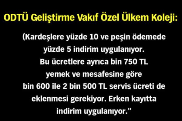 Öğrencilerini Temel Eğitimden Ortaöğretime Geçiş Sistemi'nin (TEOG) yalnızca Matematik, Türkçe ile Fen ve Teknoloji derslerinin sınav sonuçlarına göre alacak yabancı özel okullarda 2014-2015 öğretim yılı ücretleri açıklandı.