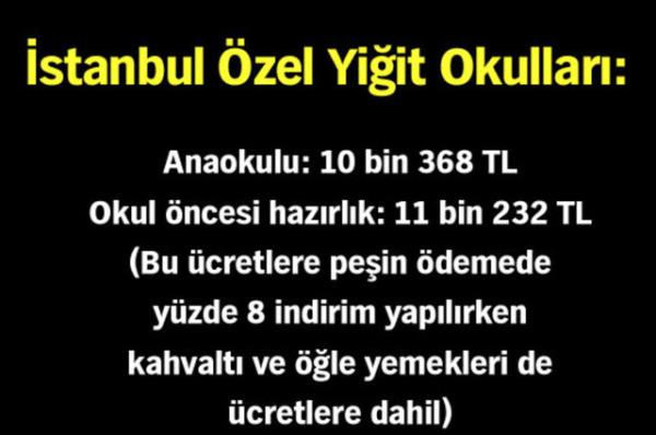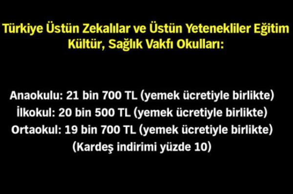 Bu yıl gündüzlü öğrenim ücreti 10 taksitle 48 bin 750 TL'ye ulaşıyor.7 gün yatılı olduğunda okulun peşin ücreti 72 bin 600 TL'ye, 10 taksitli ücreti ise 75 bin TL'ye yükseliyor.
