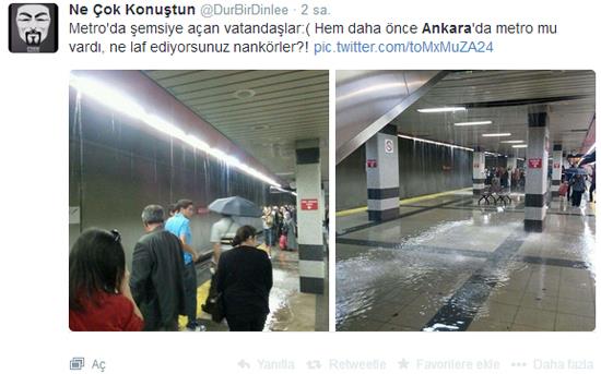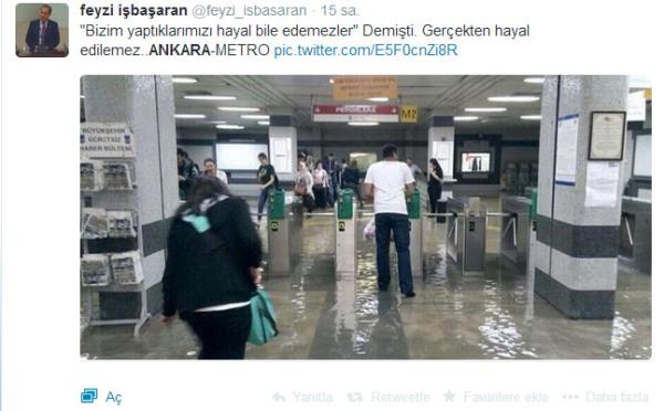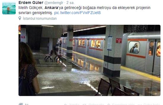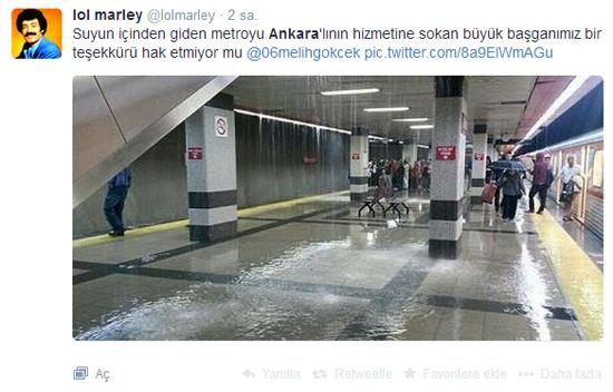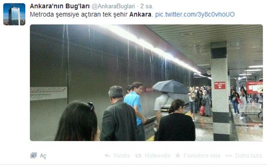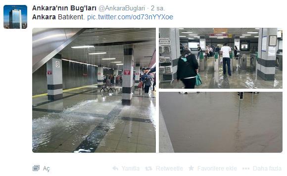 Sosyal medya Ankara'yı konuşuyor. Yağışlar sonrası Ankara Metrosu ve yolların su ile dolması sosyal medyada günün konusu oldu.