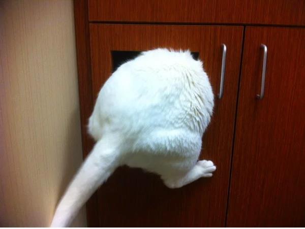 13. Cam kapının nasıl işlediğinin farkına varmaya çalışan kedi.