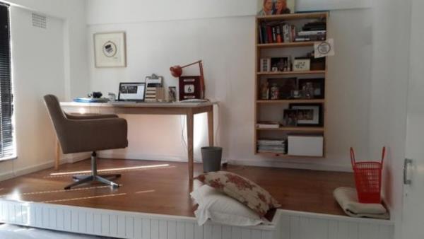 İngiltere'de yaşayan genç mimar da buradan hareket ederek 1+0 dairesini hem güzel bir ofise hem de yatak odasına çevirdi.