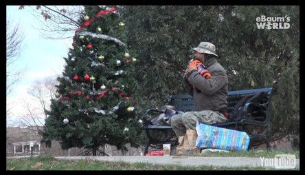 Evsiz bir adama noel ağacı ve yemek bırakan bu adamlar