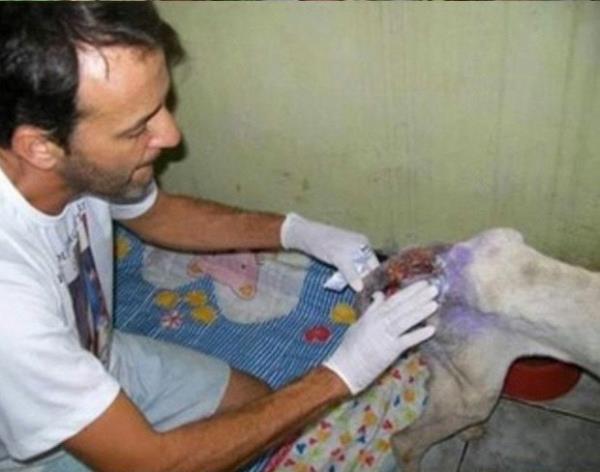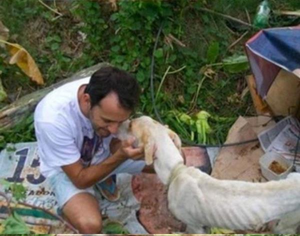 Sokakta yaralı, aç ve kimsesiz bir şekilde yaşayan köpeği sahiplenerek onu mutlu eden bu adam