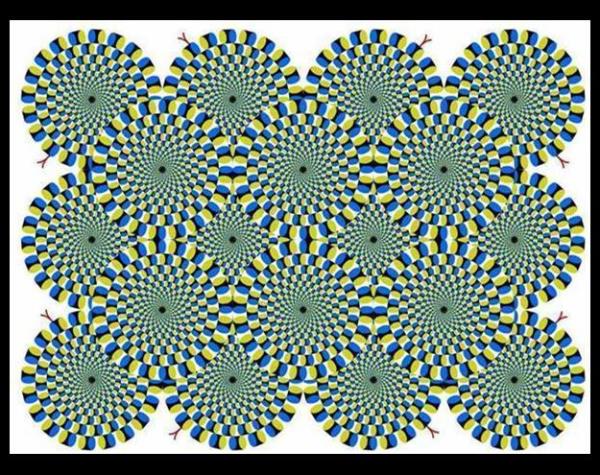 Yine hareketsiz bir resim ve siz yine hareket ettiğini düşünüyorsunuz. Peki bu nasıl oluyor derseniz. Gözlerinizin beyninize yolladığı optik yansıma onu hareket ediyormuş gibi görmenize sebep oluyor.