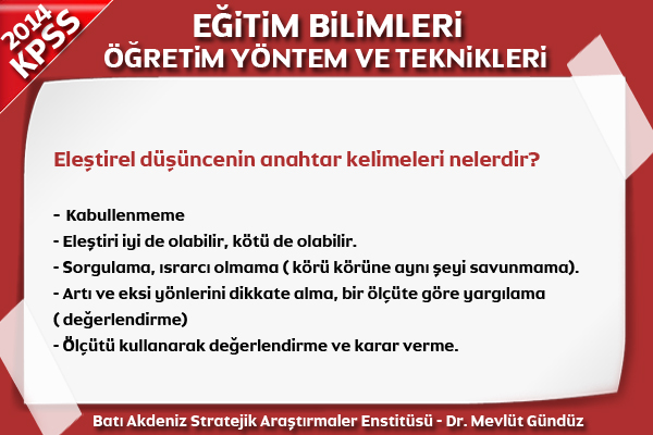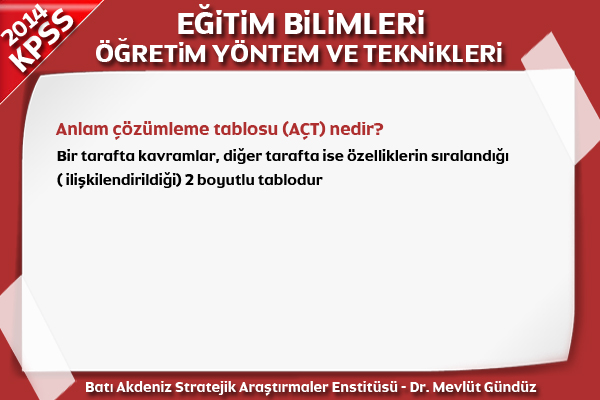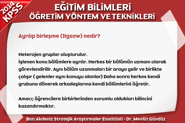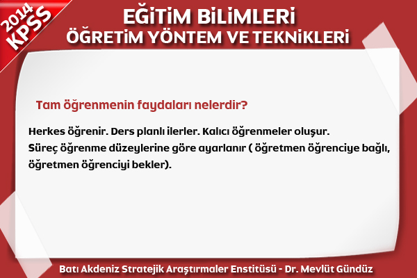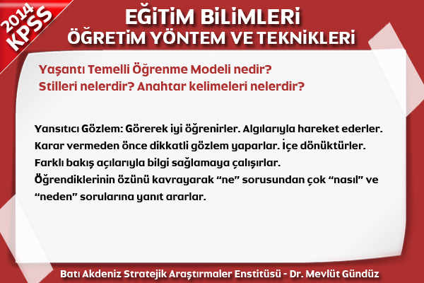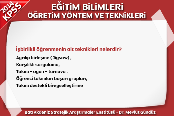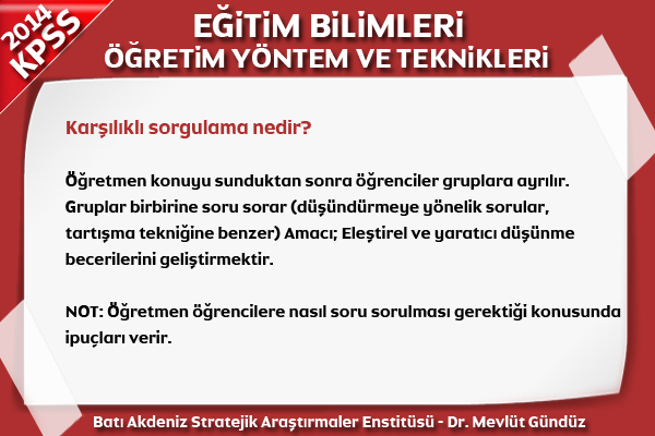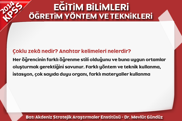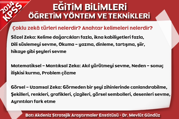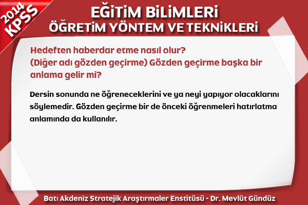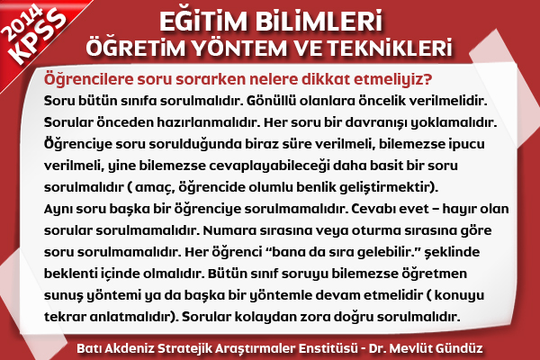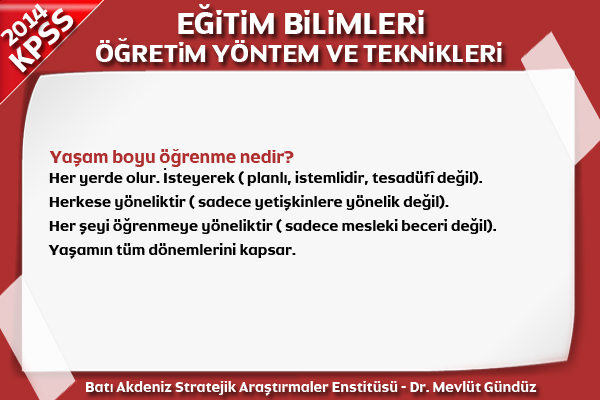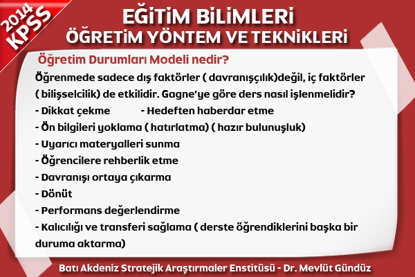 2014 KPSS Eğitim Bilimleri Öğretim Yöntem ve Teknikleri Önemli Notlar
