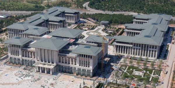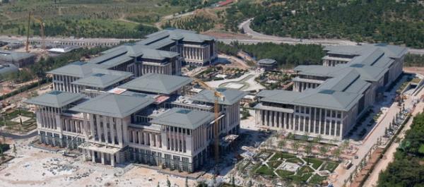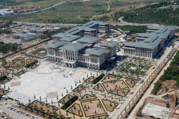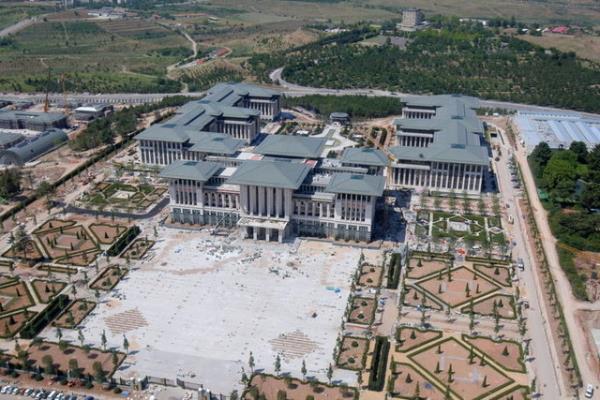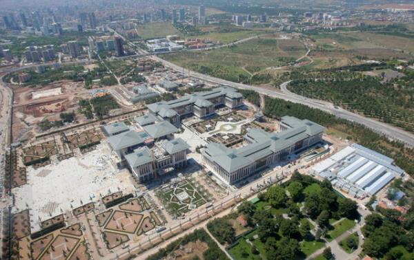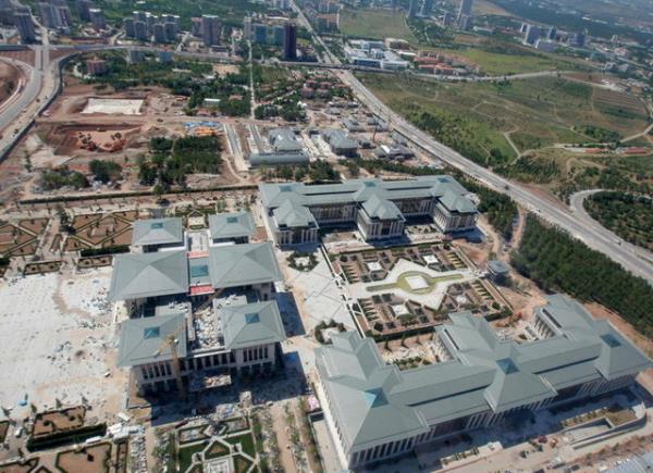 Beyaz Saray" olarak adlandırılan, Atatürk Orman Çiftliği'nde inşa edilen yeni Başbakanlık binasını havadan görüntüledi.