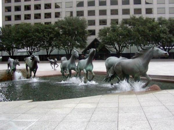 Pioneer binası önündeki sığır heykelleri - Dallas, Texas, ABD
