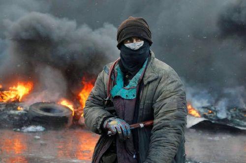 Ukrayna'daki protestolar esnasında piyano çalan gösterici