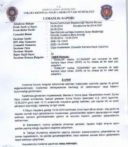 Bu sırada soruşturmada faydalanılmak üzere aydınlatıcı bilgiler de uzmanlarca raporda yazıldı. 4 kişilik uzman ekibin incelemeyi tamamlayıp hazırladığı rapor, bu kayıtlarla birlikte, soruşturmayı yürüten Soma Cumhuriyet Savcılığı'na gönderildi. Kriminal uzmanların hazırladığı bu rapora DHA muhabiri ulaştı.