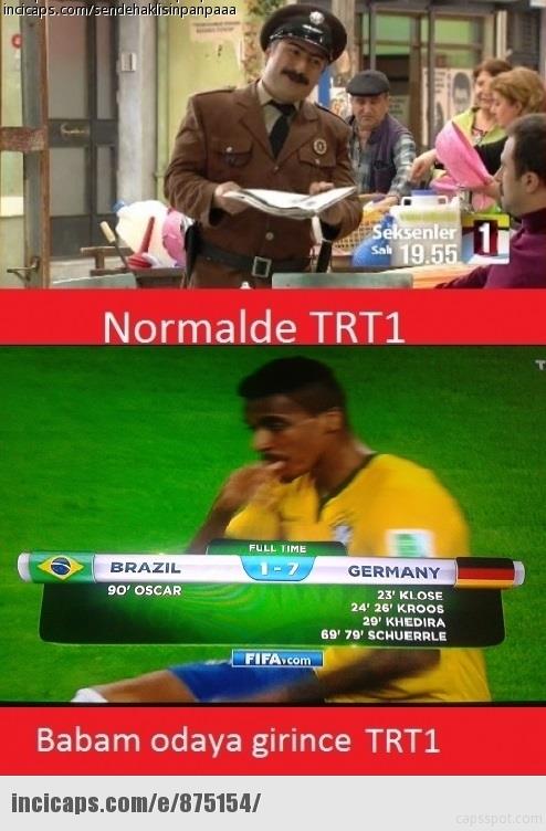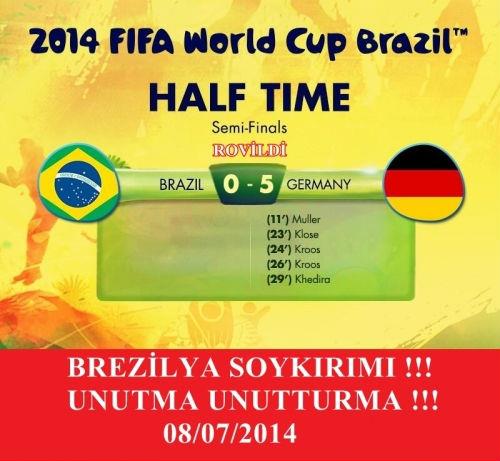 Bu Almanya 1. ve 2. Dünya Savaşı'nın intikamını alıyor diycem ama Brazilya'nın bi günahı yok ki!