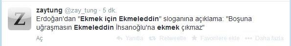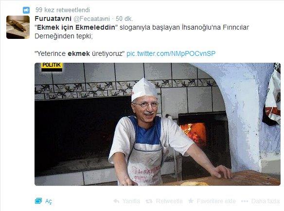 'Ekmek İçin Ekmeleddin' Sloganı Twitter'ı Salladı Twitter'da 'Ekmek için Ekmeleddin' depremi 10 Temmuz 2014