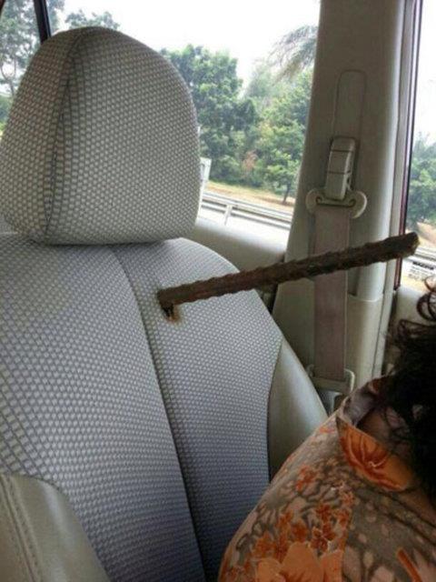 Bariyerler bıçak gibi arabayı deldi geçti.