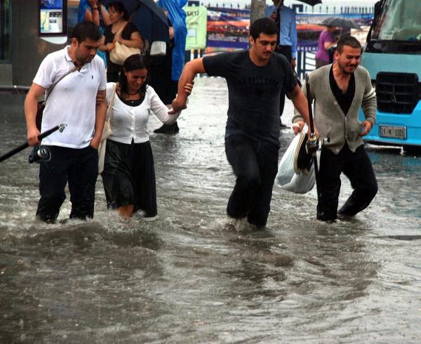 İstanbul'da yaklaşık 2 saat önce başlayan sağanak yağmur bazı semtlerde sele dönüştü. İnsanlar ve arabalar zorlukla ilerleyebilirken meteoroloji yağmurun birkaç saat daha devam edeceğini açıkladı. Sosyal medyada birçok kullanıcı da yağmur ve sel manzalarını paylaştı -