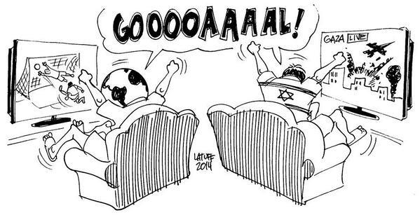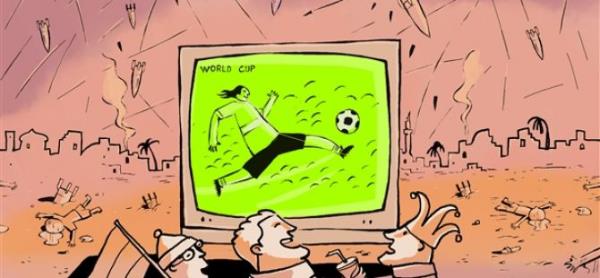 Dünya Kupası’nın final maçında başlayan bombardımana ilgisiz kalan ülkeleri tiye alan güzel bir çalışma. Bu karikatür tam olarak herşeyi özetliyor.
