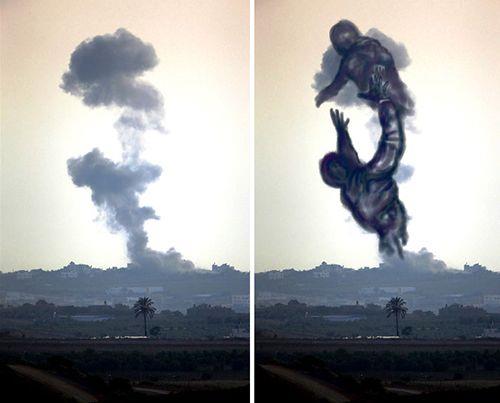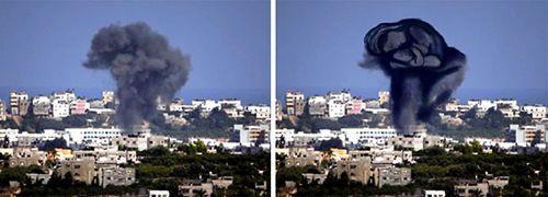 Gazze'deki ağır bombardımanların hemen ardından çekilmiş fotoğraflar üzerine çizim yapan sanatçılar, eserlerini Twitter'da paylaşıyor.