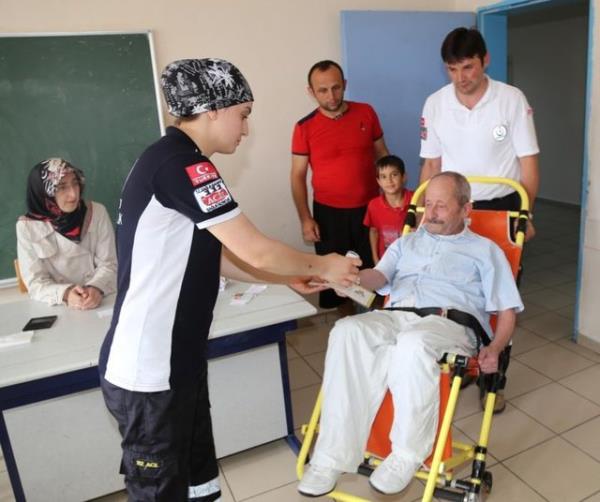 Hasta vatandaşlar doktor kontrolünde oylarını kullandı.