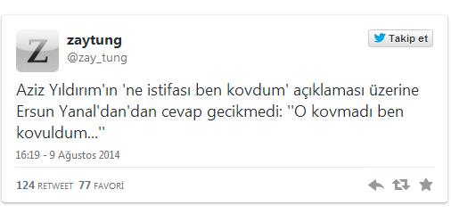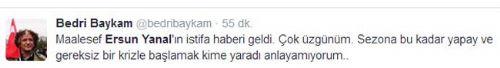 Ersun Yanal'ın istifasının ardından atılan tweetler...