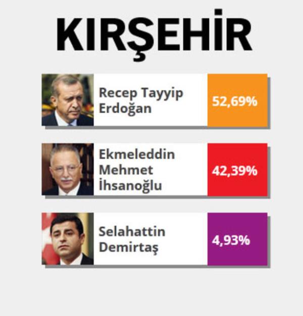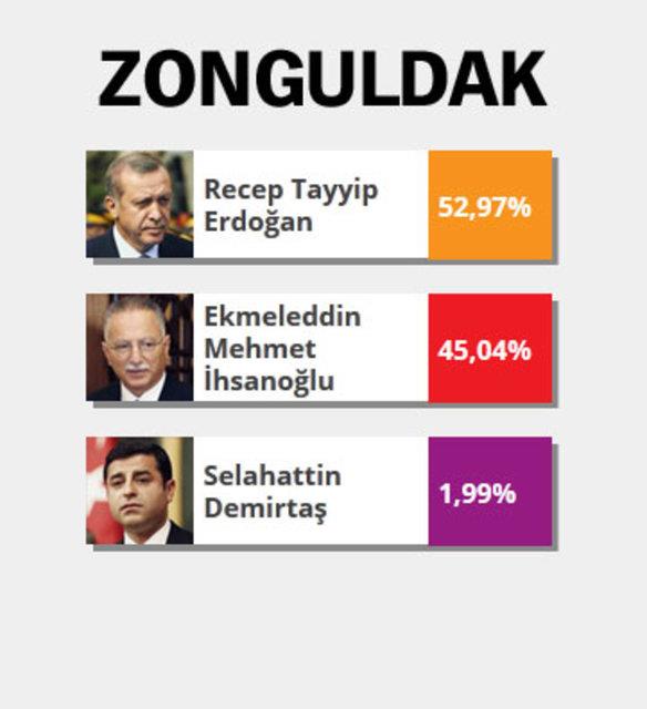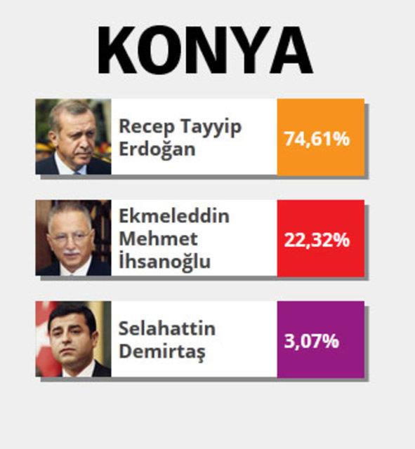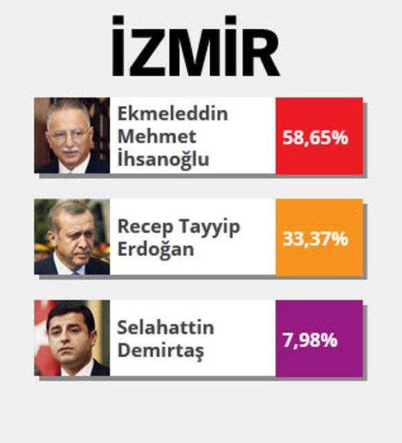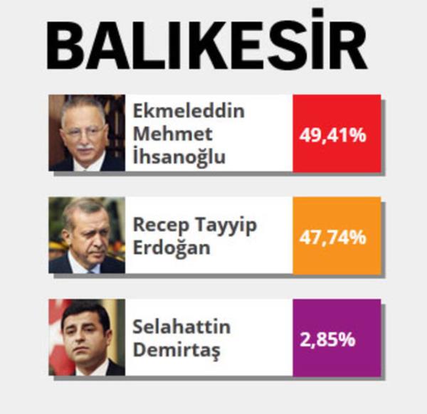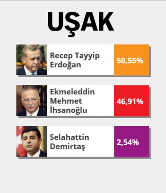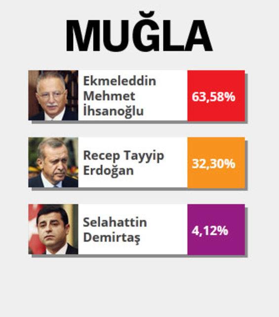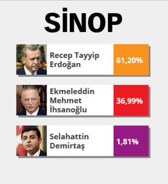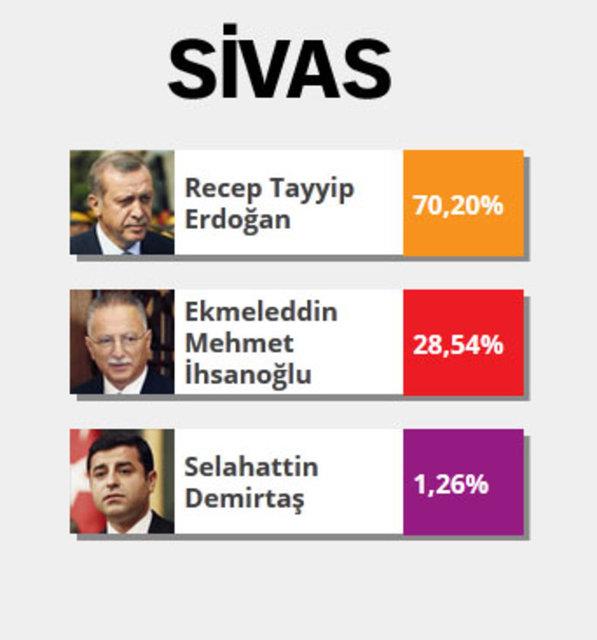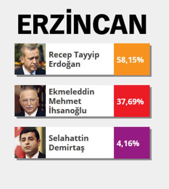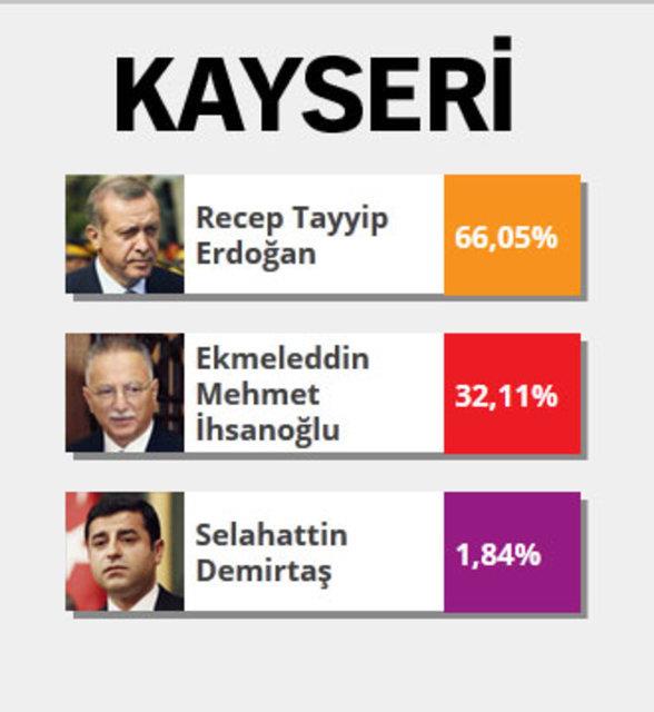Resmi olmayan sonuçlara göre Türkiye'nin 12. Cumhurbaşkanı Recep Tayyip Erdoğan oldu. Peki adaylar en çok hangi illerden oy aldılar. İşte sonuçlar...