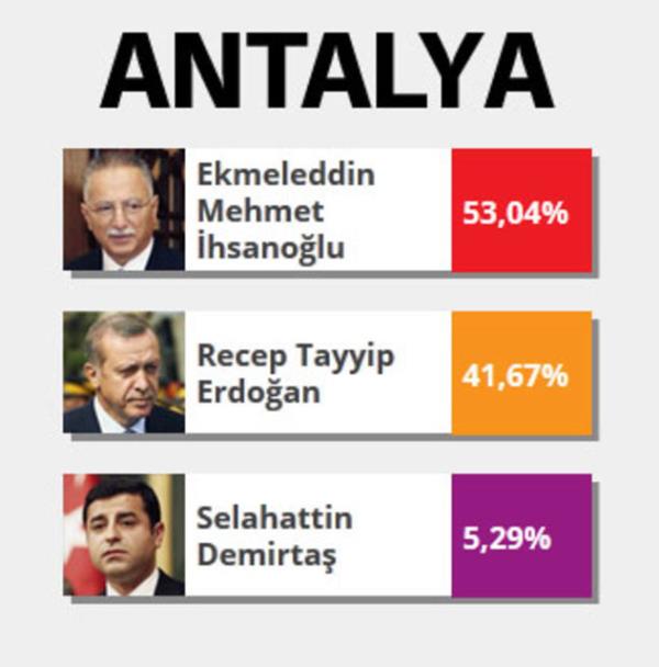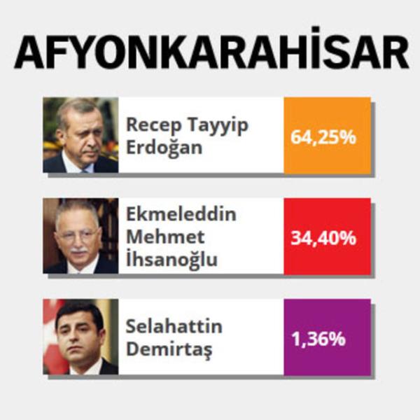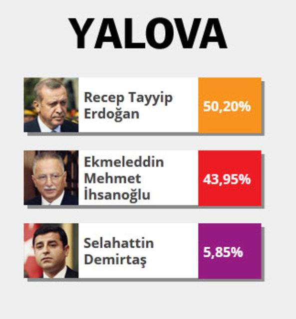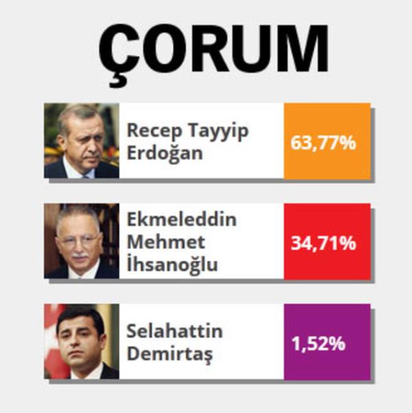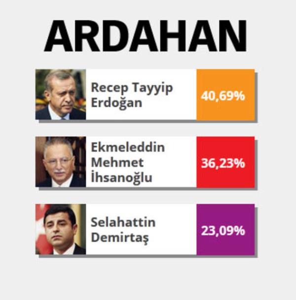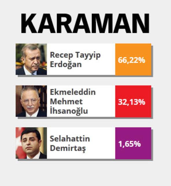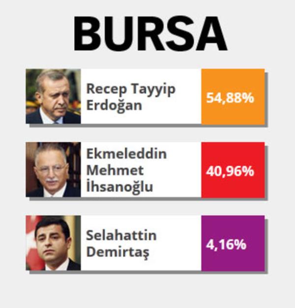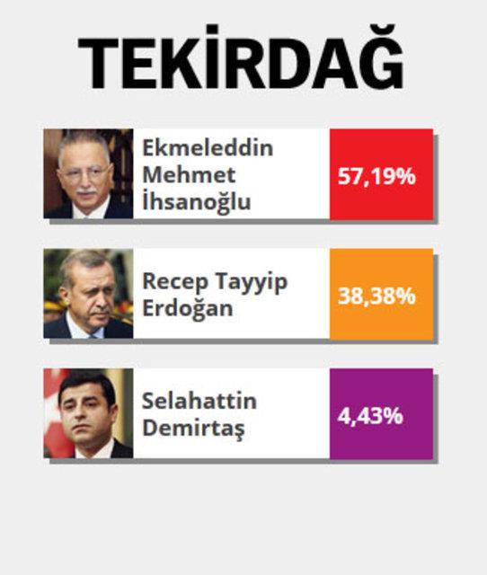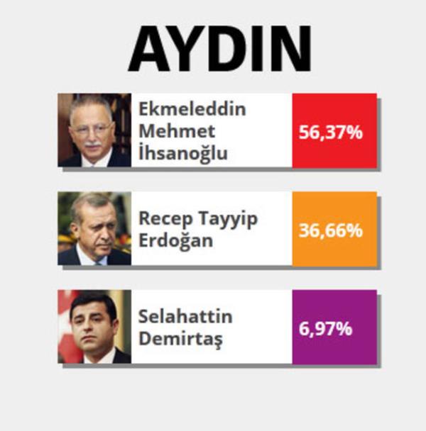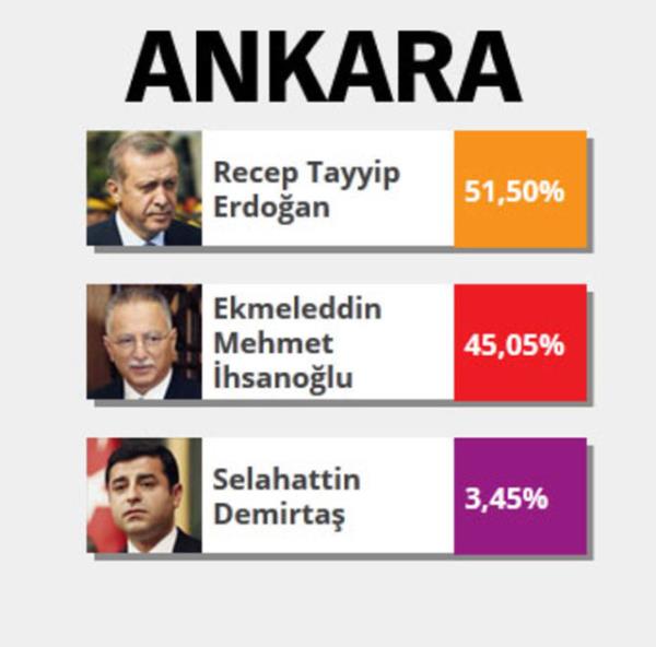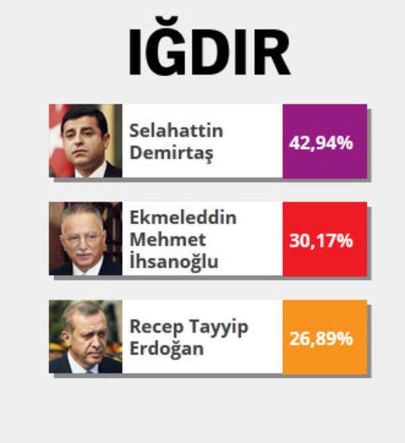 Resmi olmayan sonuçlara göre Türkiye'nin 12. Cumhurbaşkanı Recep Tayyip Erdoğan oldu. Peki adaylar en çok hangi illerden oy aldılar. İşte sonuçlar...