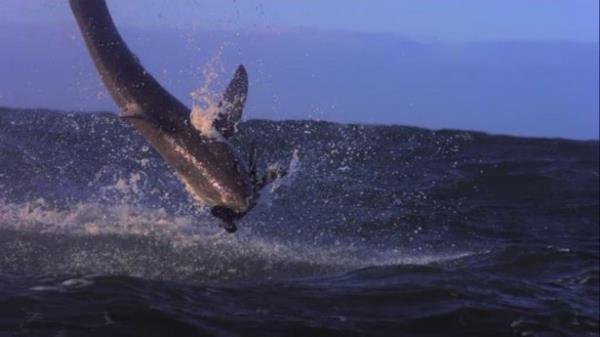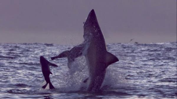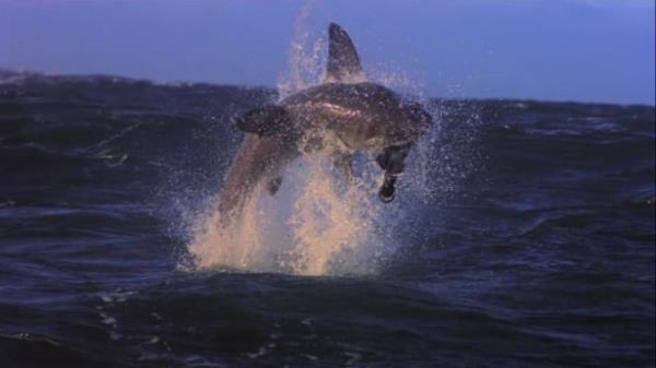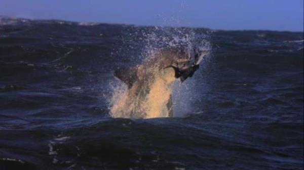 Tehdit altına giren fok balığı kendini kurtarmak için suyun üzerine sıçrar. Fakat büyük beyaz köpekbalığının karşısında şansı biraz zordur. Bazen ise şansları yaver gidip hayatta kalanlarda olabiliyor. İşte bu fok balığıda onlardan birisi. İşte o anlar;