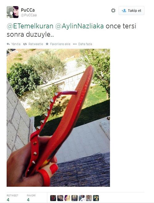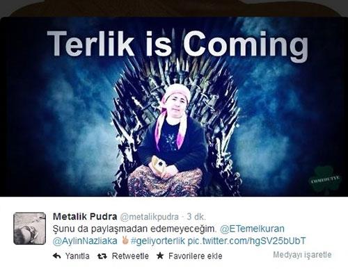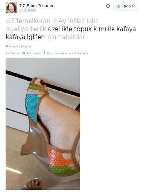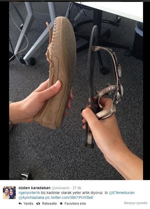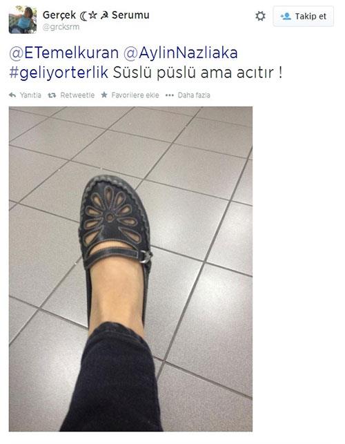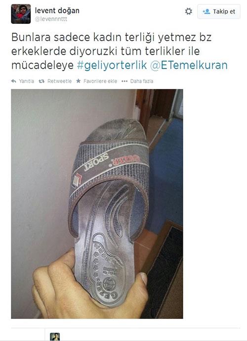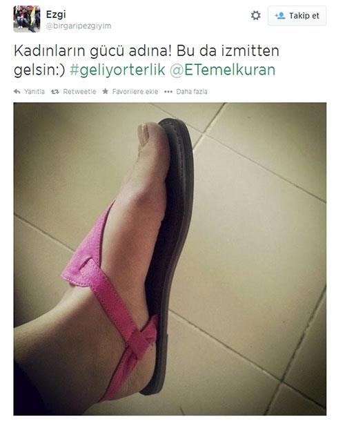 Nazlıaka'nın bu sözlerinden sonra @aycatomatillo adlı Twitter kullanıcısı, "Vekilim gelelim mi?" diyerek bir topuklu ayakkabı görseli paylaştı. Ardından gazeteci Ece Temelkuran da bu tweet'i paylaştı. Sonrasında Temelkuran, "Geliyor terlik! Kahkahalardan sonra sıra terlikte" yazarak terliğinin görselini paylaşınca, Twitter'da #geliyorterlik hashtagiyle paylaşımlar başladı. Erkeklerin de destek verdiği kampanyaya yoğun katılım oldu. İşte sosyal medyadaki o paylaşımlar