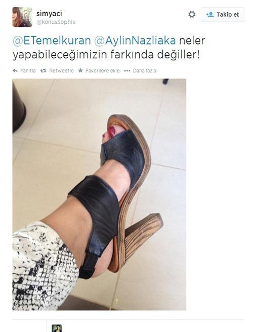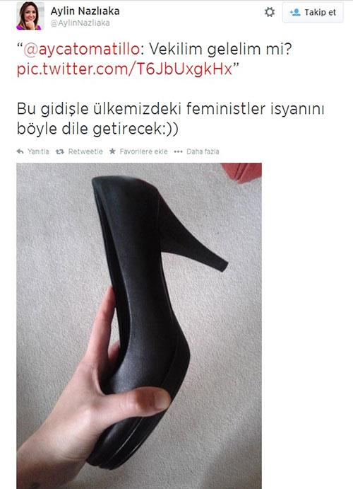 CHP Ankara Milletvekili Aylin Nazlıaka, sığınma evlerinde kalan kadınların oy kullanabilmesini öngören Seçimlerin Temel Hükümleri ve Seçmen Kütükleri Hakkındaki Kanunda Değişiklik Yapılmasına Dair Kanun Teklifi'nin doğrudan gündeme alınması için önerge verdi. Aylin Nazlıaka, Genel Kurul'da kadınların mağduriyeti üzerine yaptığı konuşma sırasında AKP'liler tarafından kendisine laf atılması üzerine ayakkabısına doğru eğilerek, "Valla şeytan diyor ki, çıkar şu ayakkabını fırlat, ama bir ayakkabıma bakıyorum, bir de sizlere. Değmez diyorum açıkçası" dedi.
