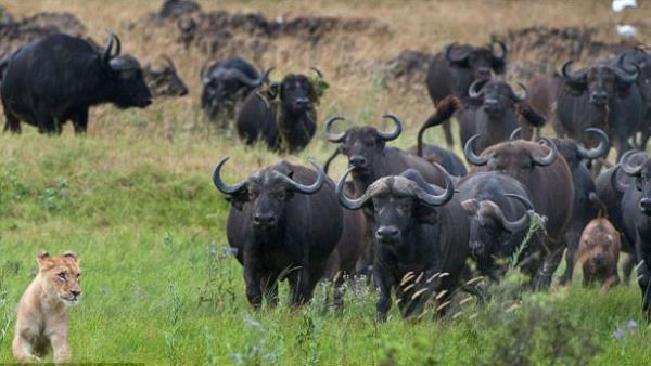 Sonunda aslanlar pes ediyor. Bufalo sürüsü de tek yakaladıkları aslanı köşeye sıkıştırarak sürüyü tamamen dağıtmayı başarıyor.