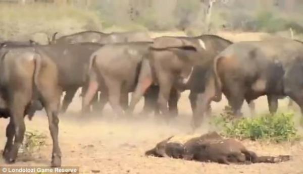 Diğer bufaloların da yardıma gelmesiyle iki sürü arasında acımasız bir savaş başladı.