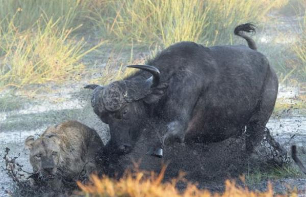 Saatler süren bu ölüm kalım savaşında başka bir bufalonun yardıma gelmesiyle aslanlar geri çekildi.