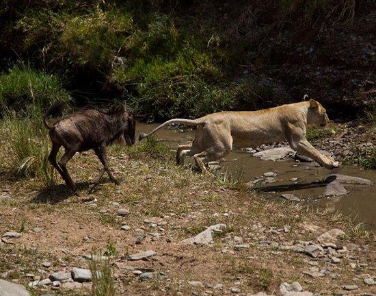 Aslanlar yavru bufaloyu yakalamak için aniden saldırdılar.